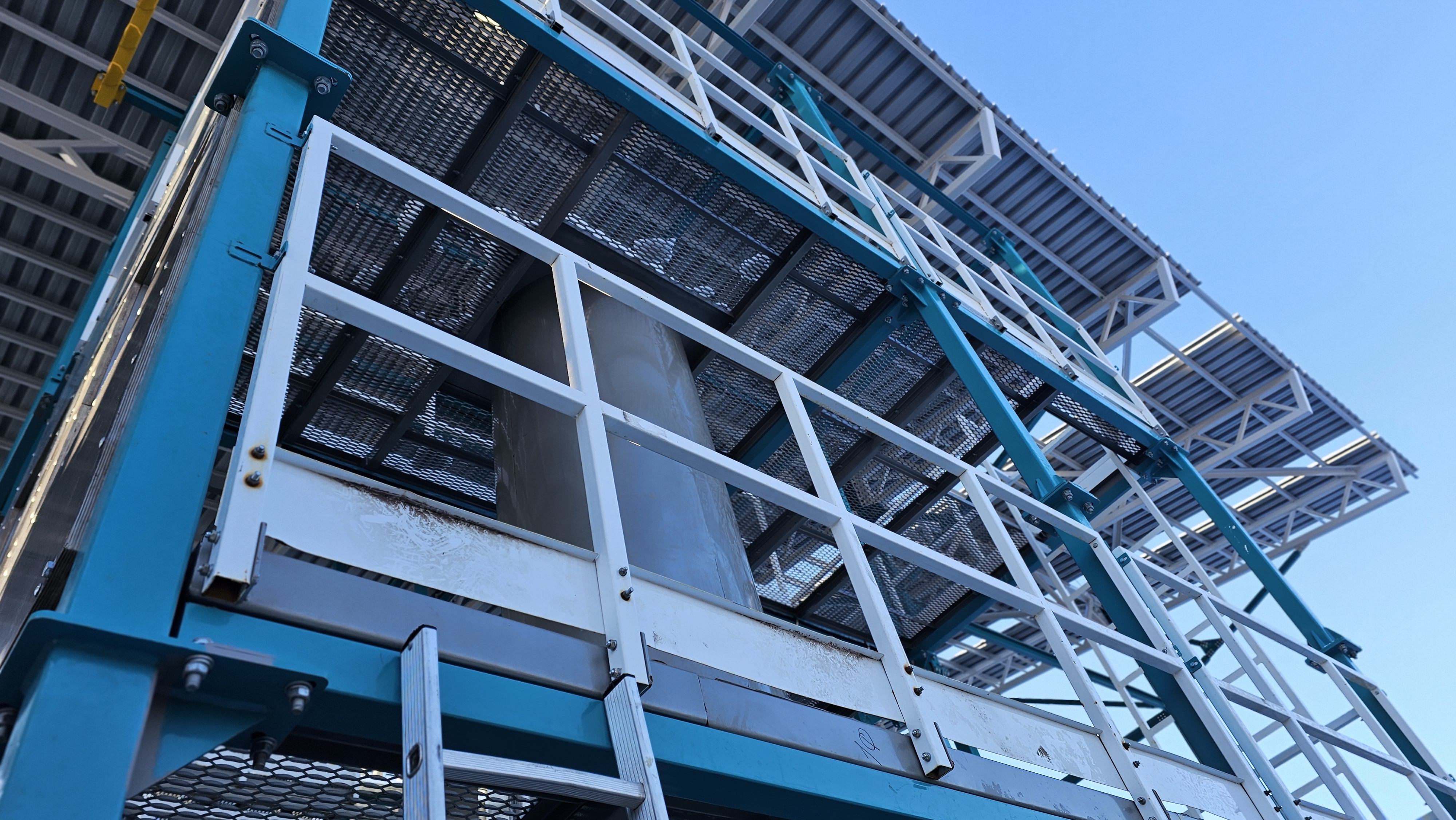 Учебно-тренировочный полигон "АЛЬПИНИСТ 20-03" представляет собой многофункциональный комплекс для подготовки специалистов к работе в особо опасных условиях. Конструкция полигона выполнена в виде вертикальной цистерны с системой маршевых лестниц и переходных площадок.
